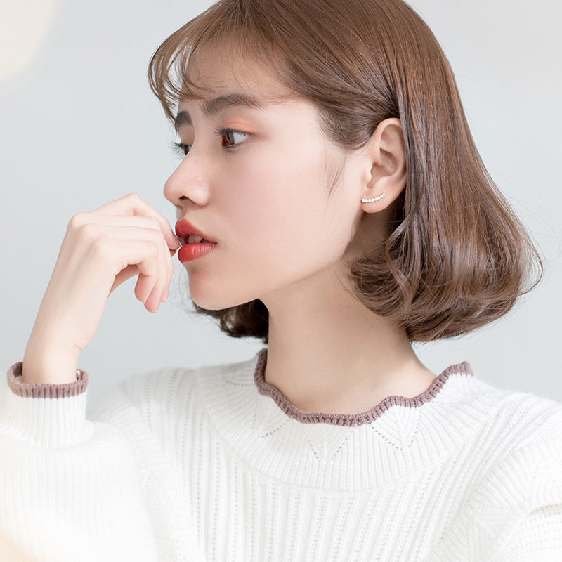 S925 Silver Simple Rhinestone Straight Ear Studs