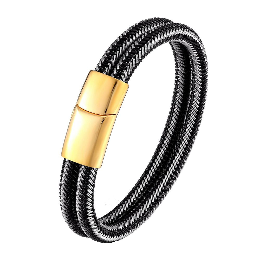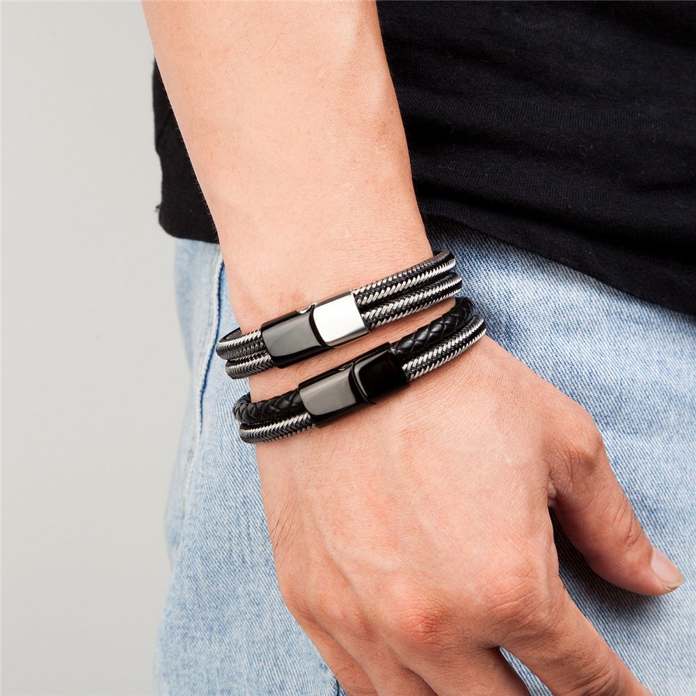 Men's Steel Wire Woven Stainless Steel Double Loop Bracelet