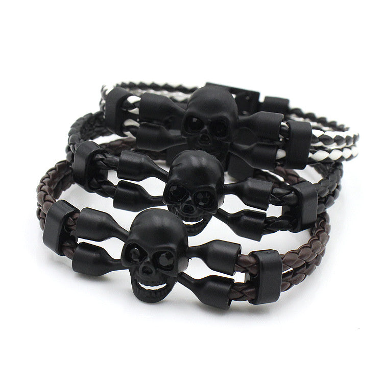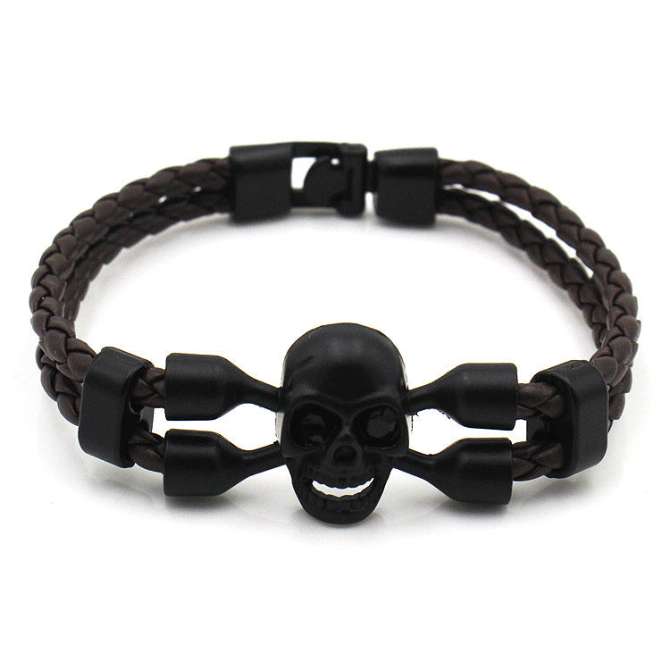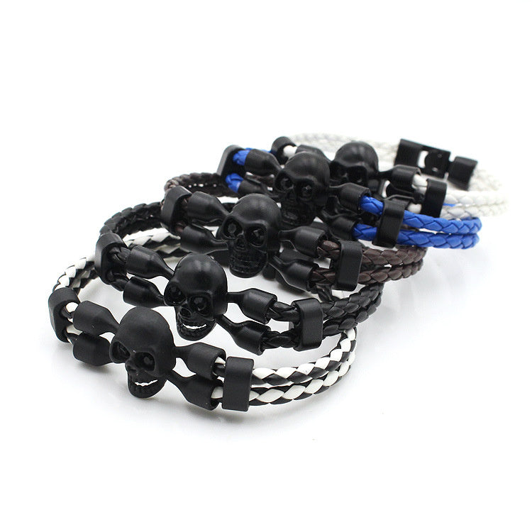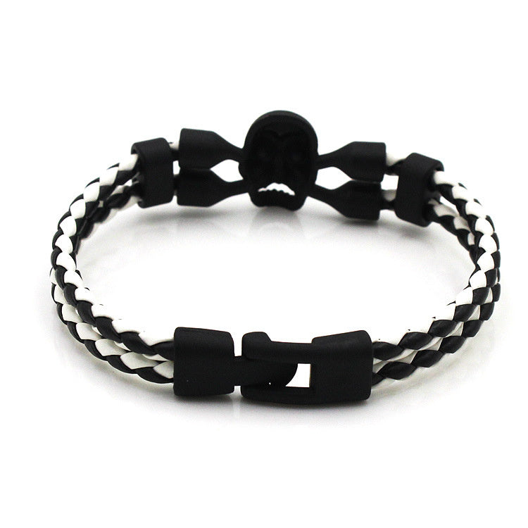 Neutral Men's Skull Black Buttons Leather Bracelet
