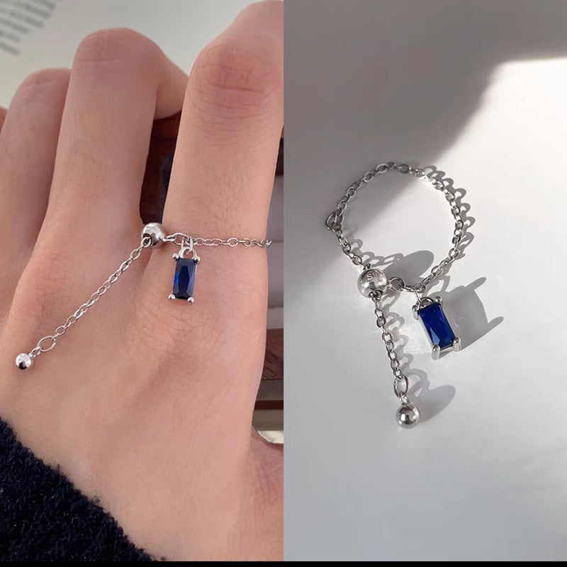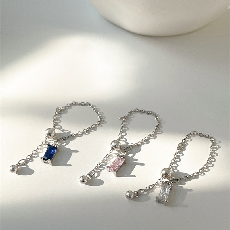 Women's Fashion Sterling Silver Color Small Square Diamond Pull Ring