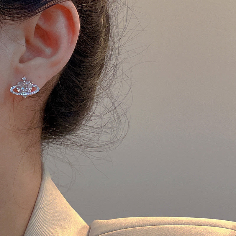 Planet Niche Cold Wind Super Full Of Diamond Earrings